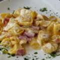 Tortellini fatti a mano, dalla sfoglia sottile e morbida, ripieni...